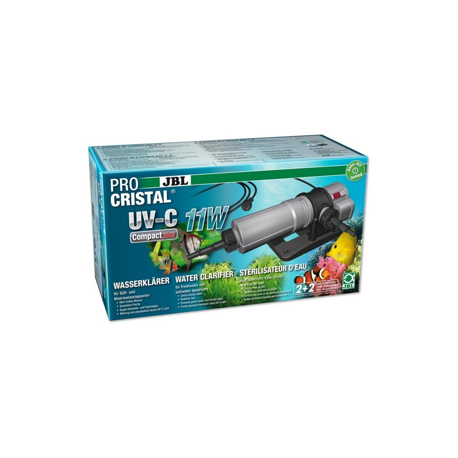 JBL Procristal UV-C Compact plus 11W C'est un stérilisateur UV-C pour les aquariums d'eau douce et d'eau marine conçus pour éliminer rapidement et efficacement les stratégies vertes et blanchâtres causées par des algues et des bactéries flottantes.