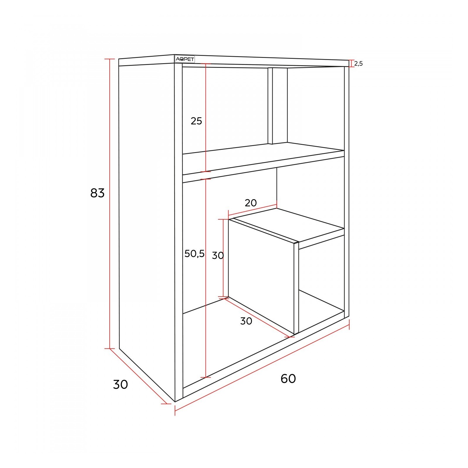 La taille de la 60 armoire naturelle est de 60x30x83 cm d'une épaisseur de bois de 2,5 cm (supérieure à la moyenne des autres supports marketing).