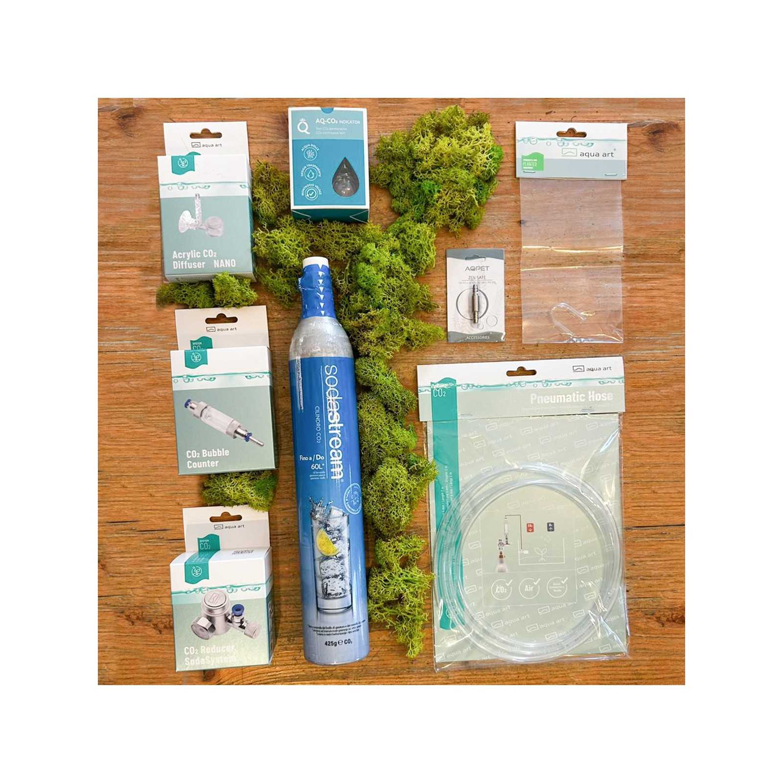Le kit complet Sodatream pour aquariums est conçu pour offrir un système de distribution de dioxyde de carbone simple, sûr et hautement fonctionnel. Il est idéal pour les aquariums plantés, où le CO₂ représente un élément fondamental de la croissance sain des plantes et de la stabilité biologique de l'écosystème.