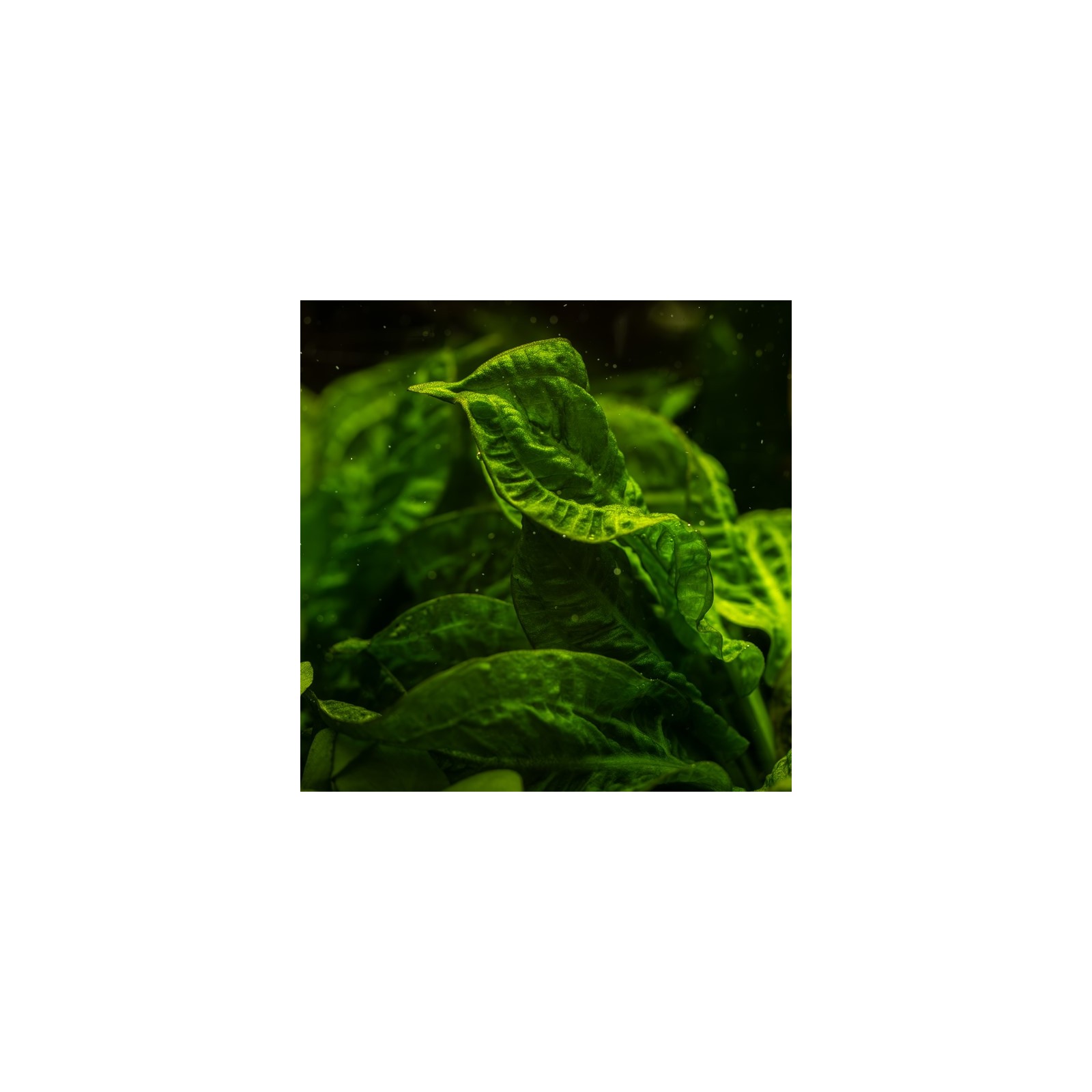 Les feuilles atteignent une longueur de 20 à 60 cm et la seule plante de rosette devient de 15 à 20 cm de large. Il est recommandé de la positionner à l'arrière de l'aquarium, où les feuilles peuvent flotter élégamment sur la surface de l'eau. Les feuilles peuvent être complètement vertes ou brunes.