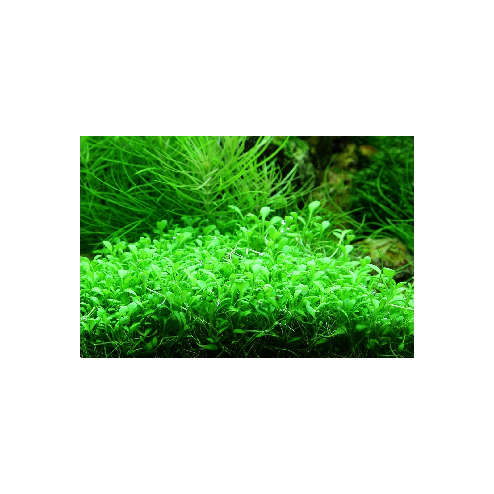 ** GLOSSOSTIGMA ELINOODES ** de la Nouvelle-Zélande, il est très demandé dans les aquariums d'inspiration japonaise. C'est l'une des plus petites plantes d'aquarium (2-3 cm de haut), si idéale pour le premier étage. C'est une plante difficile qui nécessite beaucoup de lumière. Il pousse vers le haut si la lumière est insuffisante. Assurez-vous que les plus grandes plantes ne sont pas ombrées. Lorsqu'il est planté dans l'aquarium, de petites touffes (environ 1/8 de navire) doivent être positionnées à quelques centimètres à la croissance des plantes plus rapidement. L'ajout de CO2 et de l'eau douce favorise considérablement la croissance.
