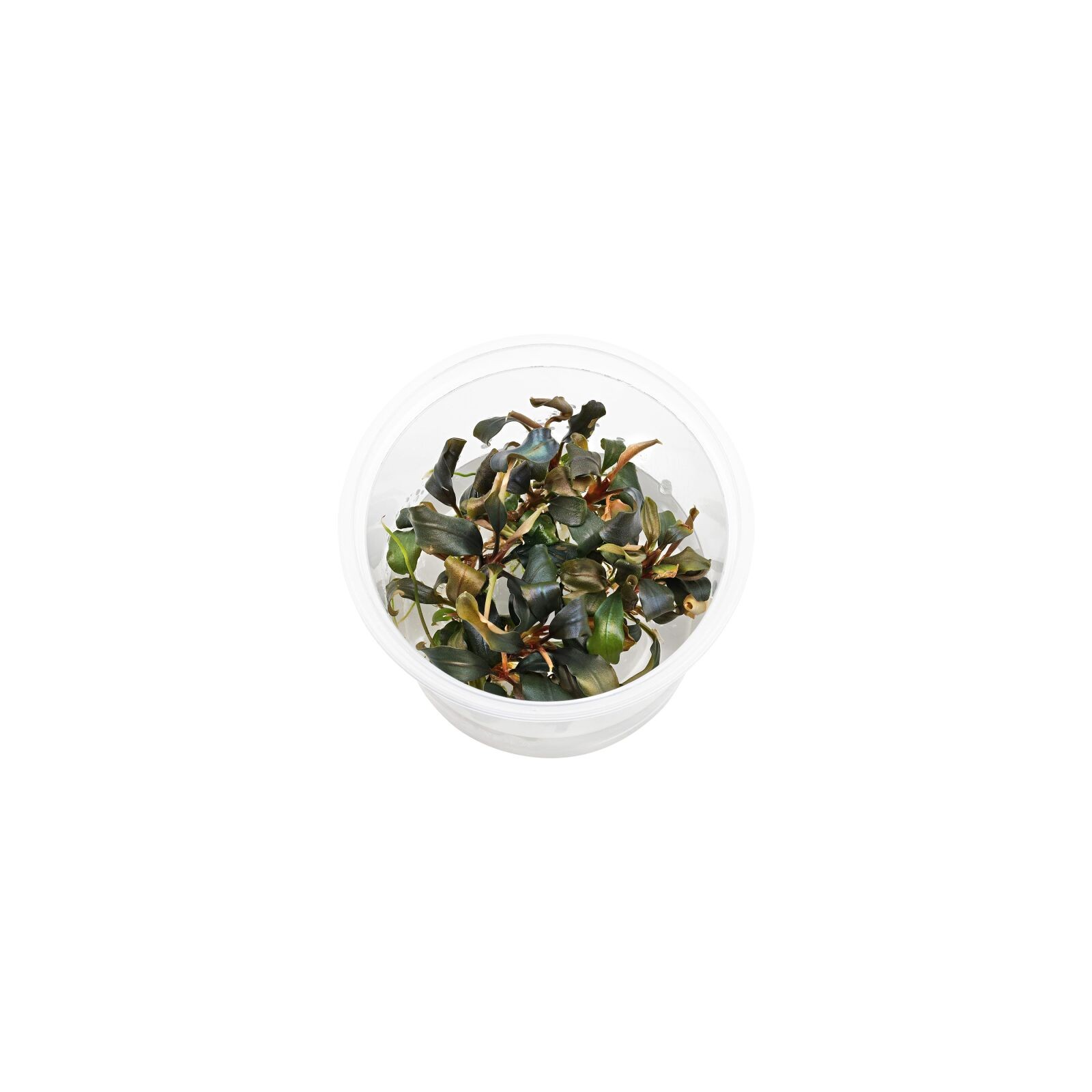 Le bucephalandra sp. Le «rouge» donne le meilleur des niveaux de lumière inférieure et est très facile à croître. Les feuilles sont très sombres vertes ou rouges.