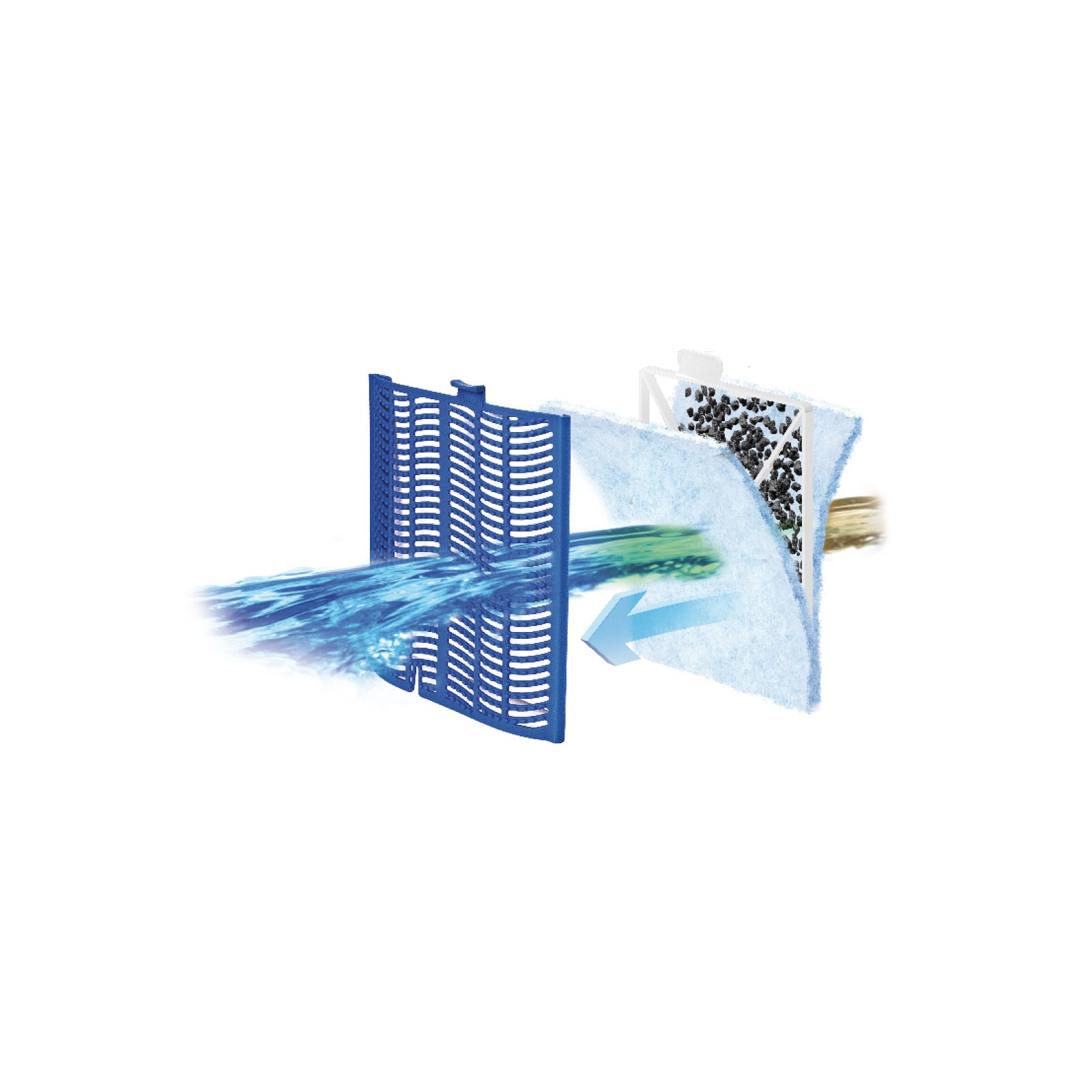 Filtre interne de tailles compactes avec cartouches de filtration jetables. Assure un filtrage efficace grâce au filtre mécanique intégré à la pompe, à la cartouche de filtre chimique à haute capacité de capacité adsorbante et au filtre biologique conçu pour obtenir une surface élevée et une oxygénation maximale pour les bactéries nitrifiantes. La pompe de mouvement, parfaitement intégrée dans le corps du filtre et le séparable pour favoriser la maintenance, garantit un flux d'eau constant avec une consommation d'énergie minimale. La taille extrêmement contenue est facilement cachée dans l'aquarium, tandis que les 2 puissantes ventouses et le crochet spécial garantissent une flexibilité d'ancrage maximale. Conçu pour être pratique, permet une maintenance simple, sécurisée et immédiate: chaque cartouche est facilement remplaçable sans mouiller les mains et sans arrêt de filtre.