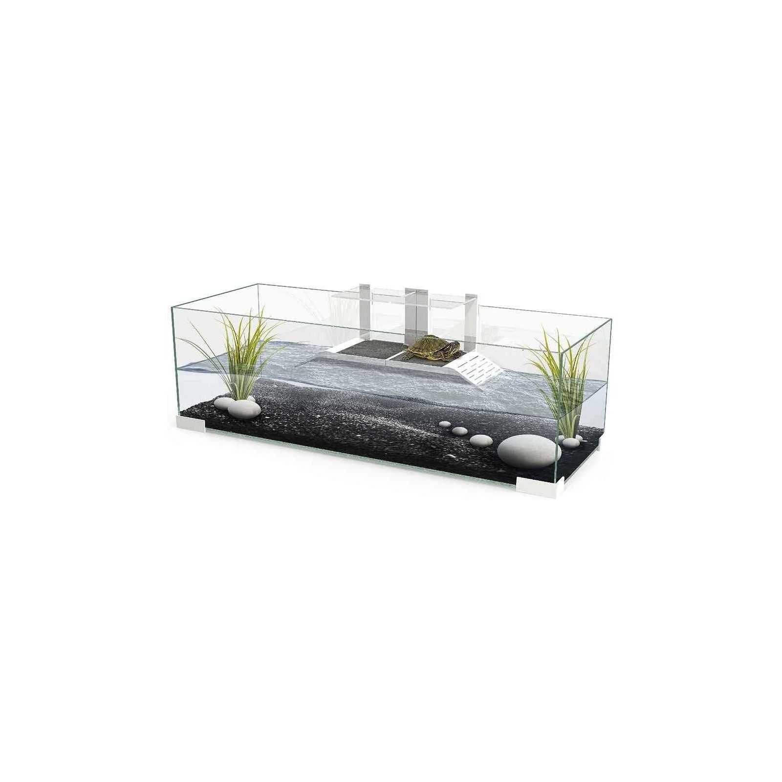 Tortue de verre avec un design simple et élégant équipé d'une rampe en plastique de haute qualité pour permettre aux tortues de se démarquer de l'eau afin de mieux exposer la source de chaleur.