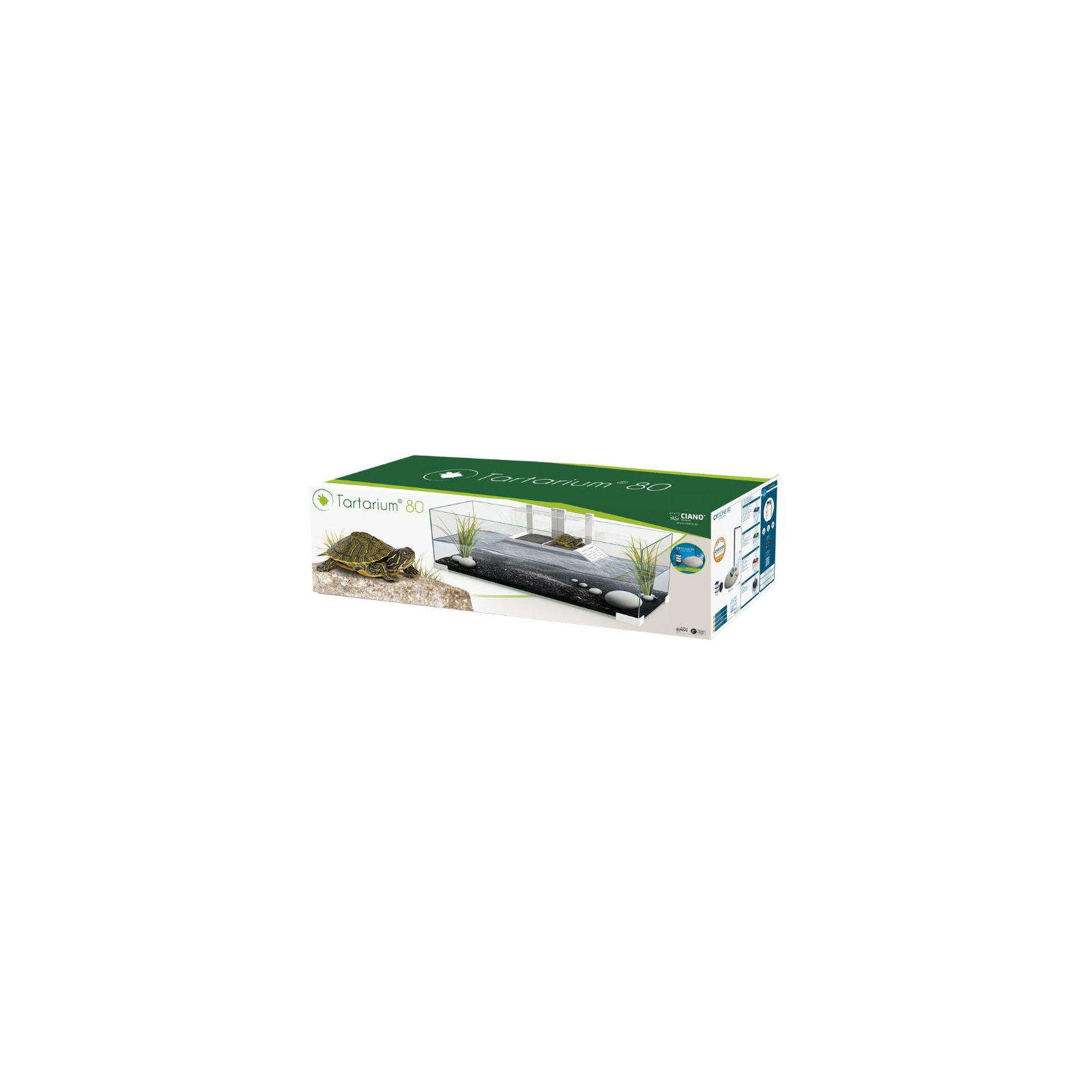 Avec des matériaux de haute qualité, le tartrium est constitué de verre, ce qui permet une vue totale de tous les mouvements de tortues et de plastique blanc avec une finition brillante sur ses quatre supports et rampes.
