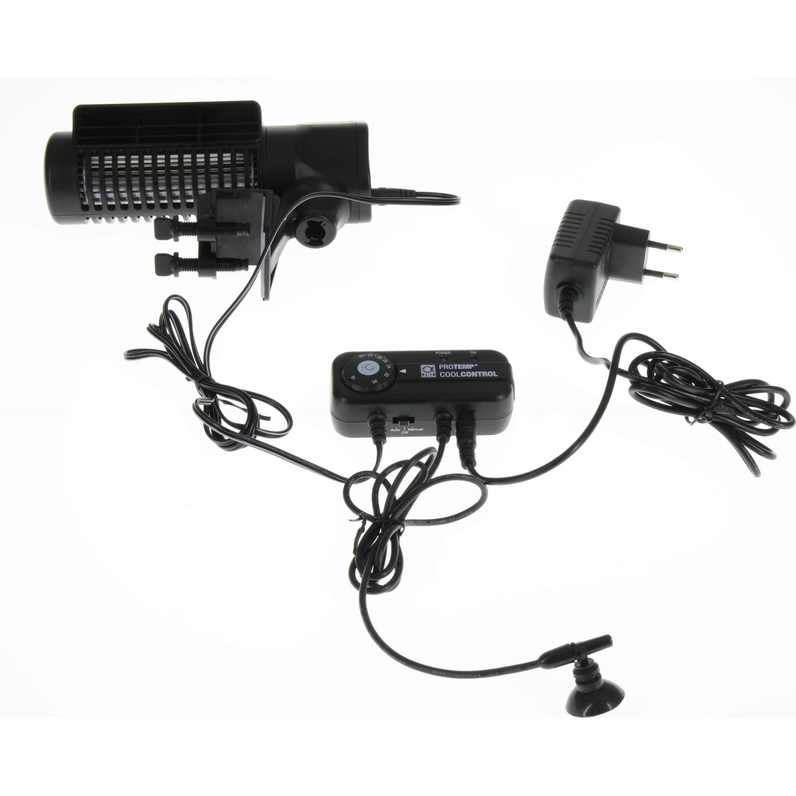 Contenu: Thermostat avec capteur de température (câble de 90 cm), ventouses et ruban adhésif double face pour la fixation.