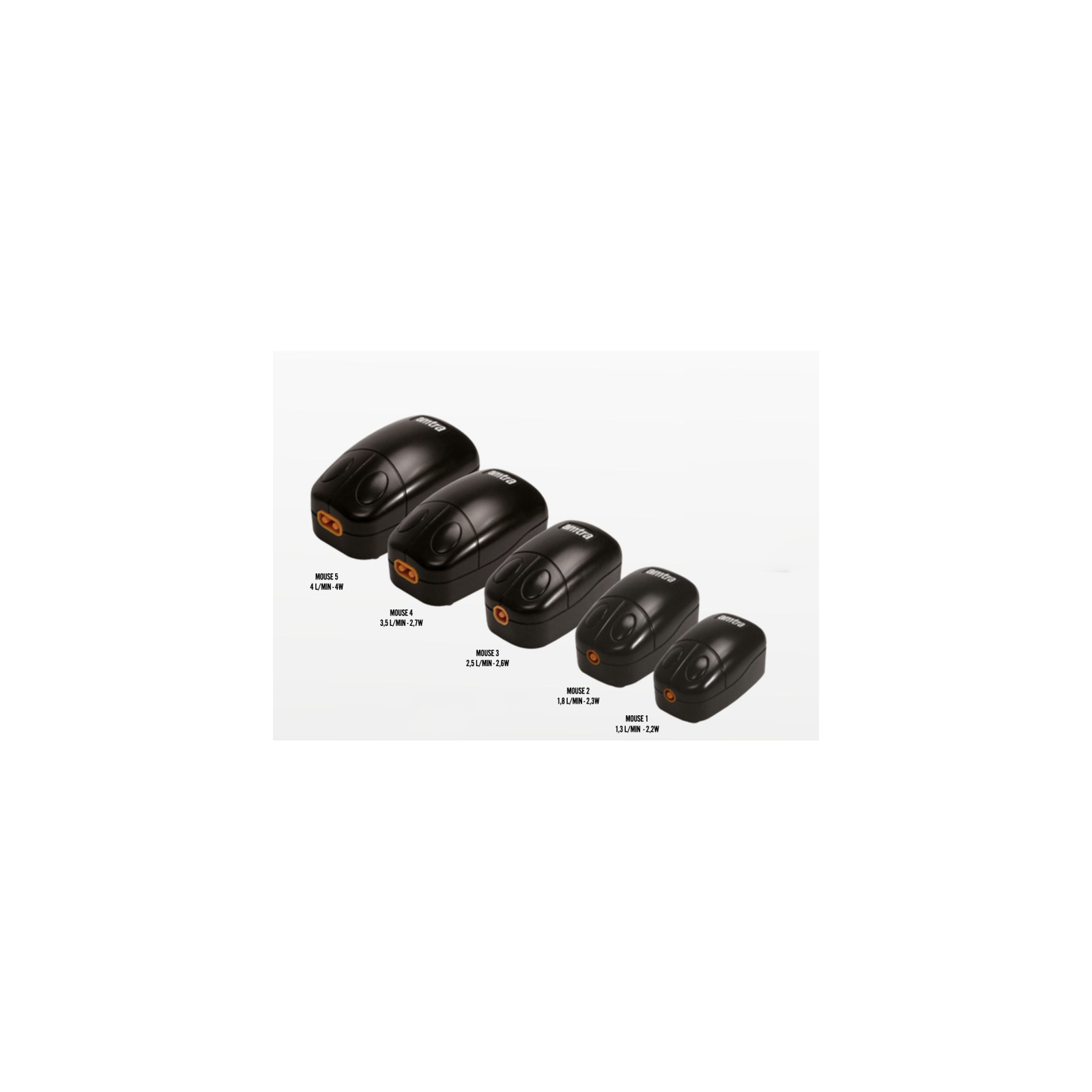 • 210 lt / h AMTRA Mouse 4 (3,5 litres / minute) - 2 sorties - 2.7 Watts - Taille de l'article: 9.0 x 7,0 x 20,5 cm - Numéro d'article: A2070016