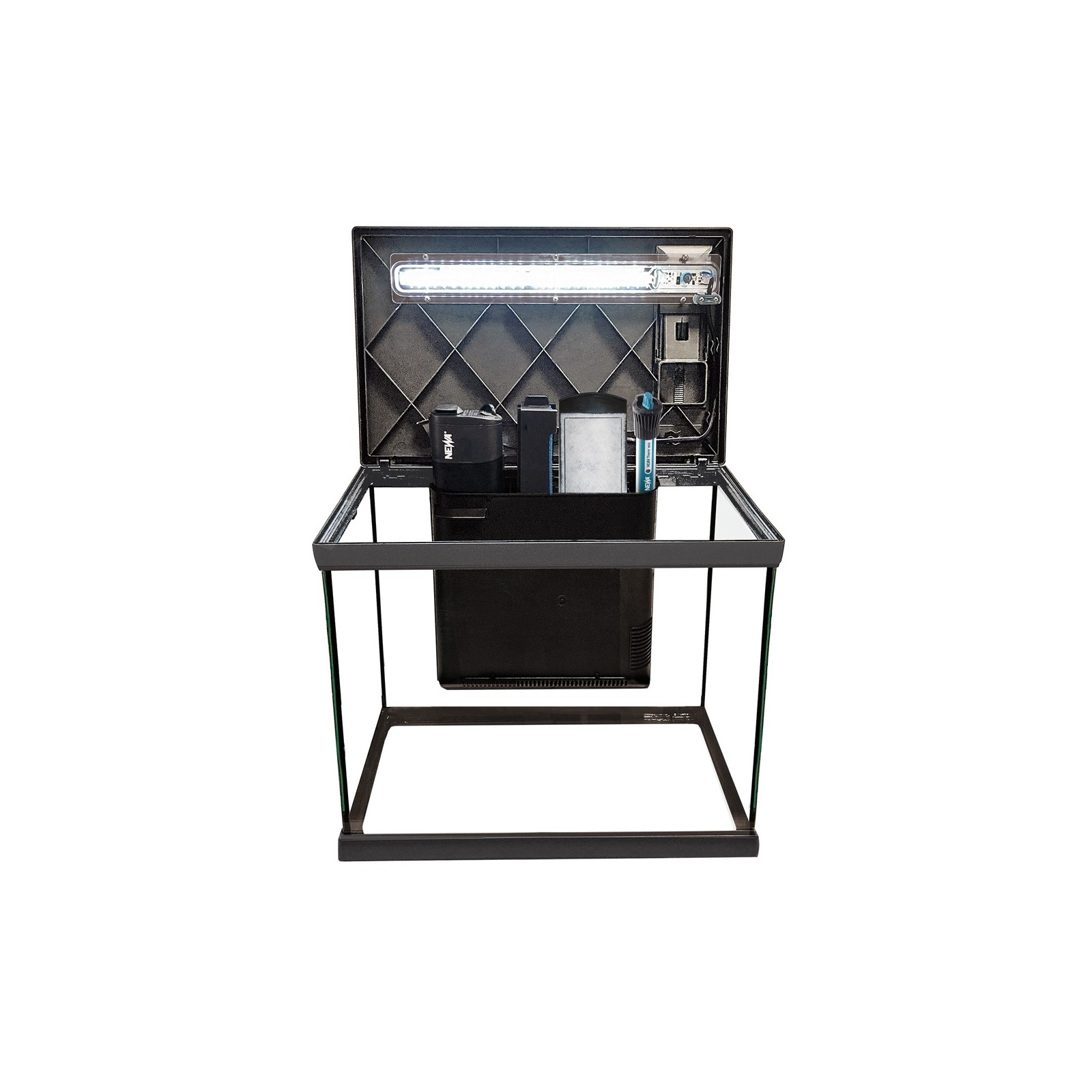 FACILE PULISHING AND MAINTENANCE: Simply open the aquarium cover to access all parts of the filter. The interchangeable cartridges are easy to replace without wetting your hands.