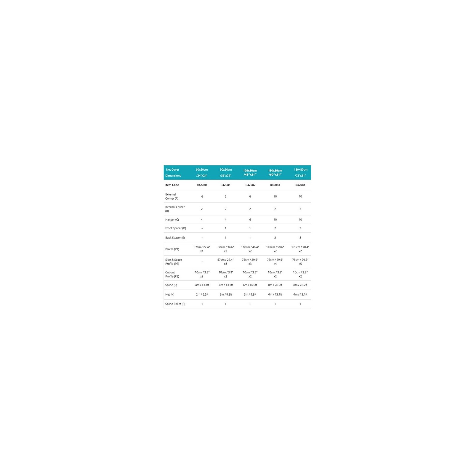 | R42082 | 120 × 80cm | 3m | 6m | 6 hooks, 1 front / rear spacer |