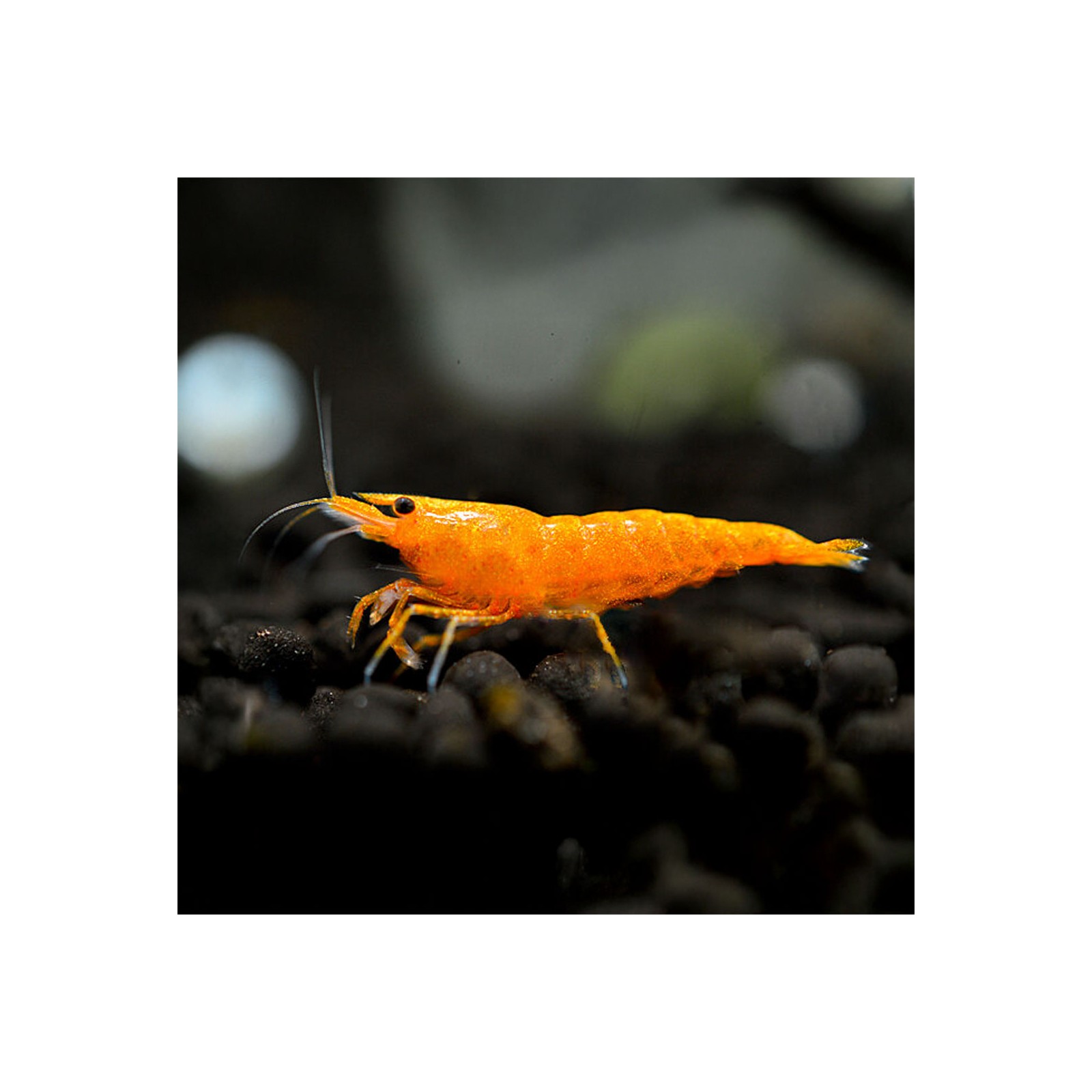- Substrate: Dark, to enhance the orange coloring of the shrimp
