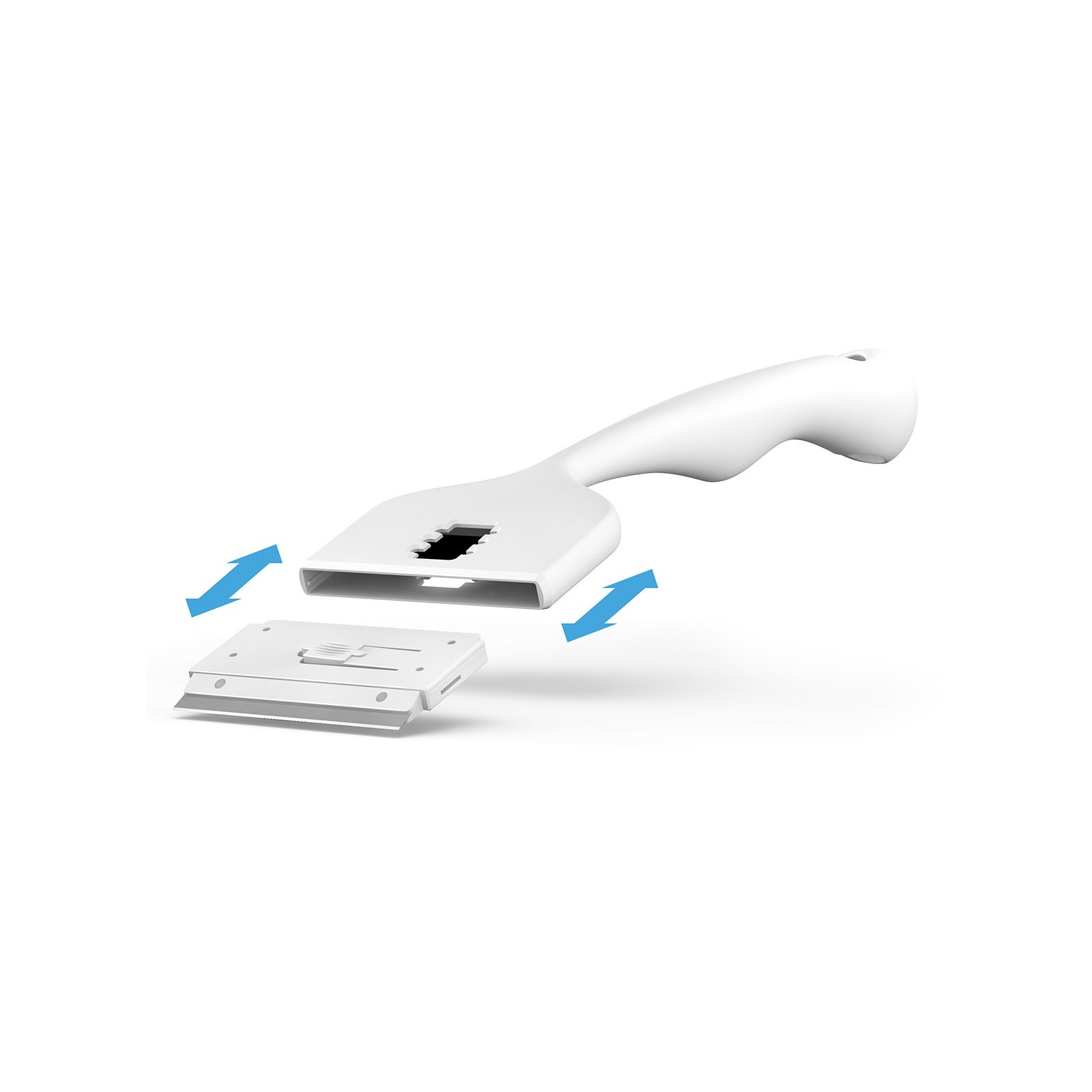 Easily switch from metal blade to soft pad. Simply remove the cartridge from the scraper head, flip and re-enter.