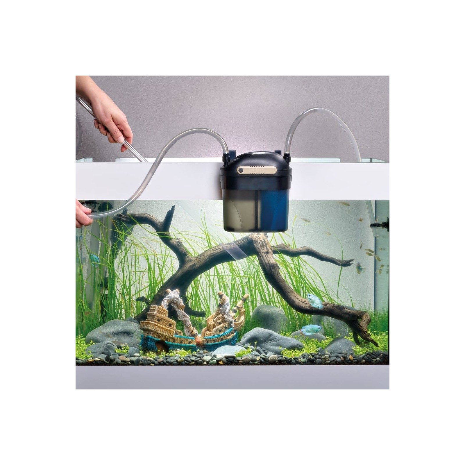It is equipped with a practical and efficient filter sponge on which the sediments are deposited.