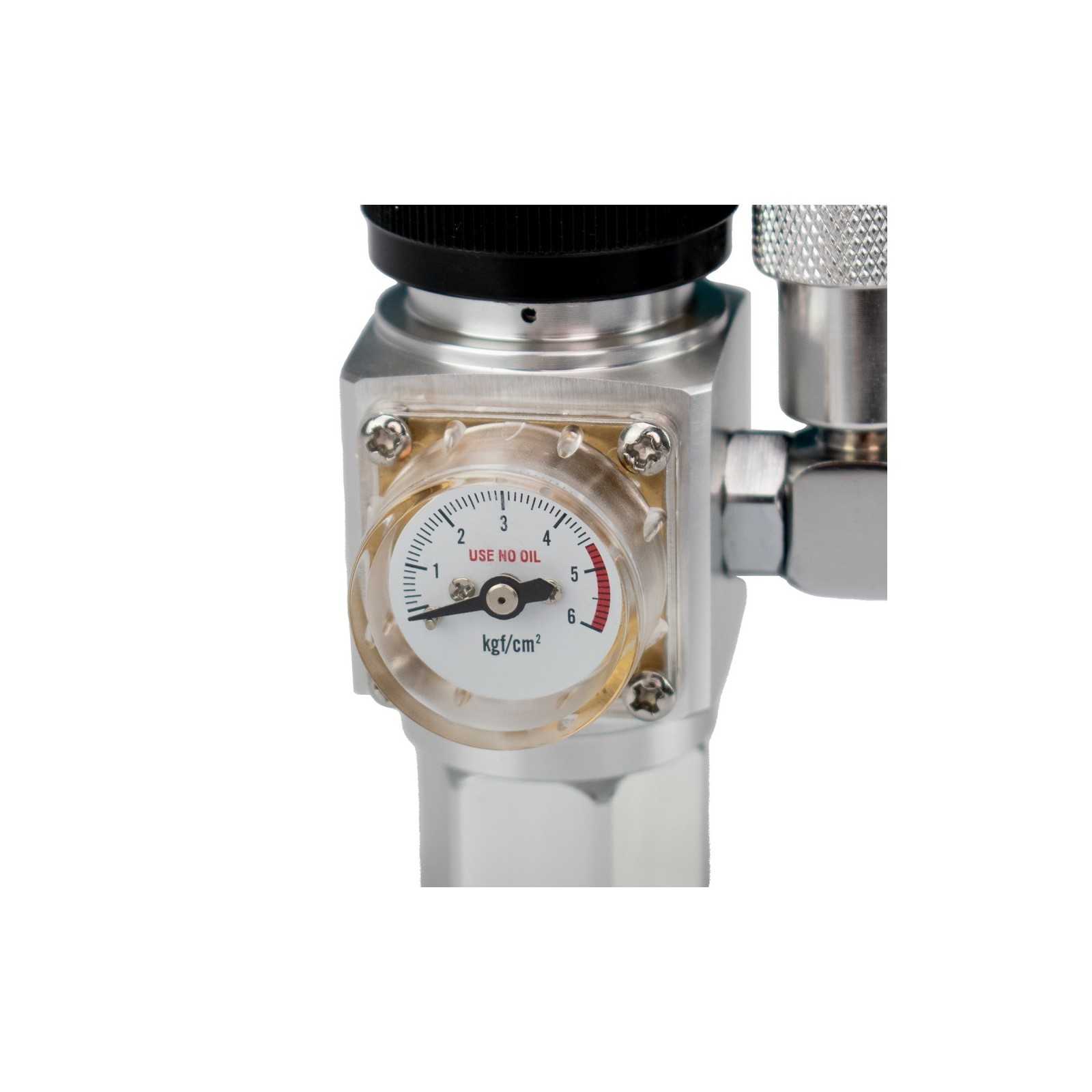Adopt self-regulating piston technology with an exercise pressure in the range 0-6 bar. The finely designed fine adjustment valve allows a stable and precise dosage of the co2 delivered. The convenient battery pack, rotatable at 360 °, with a built-in non-return valve and the pressure gauge, make the use of a simple Lower Pro and for everyone. Safety is guaranteed by the quality of the materials used and by a dual internal security system.