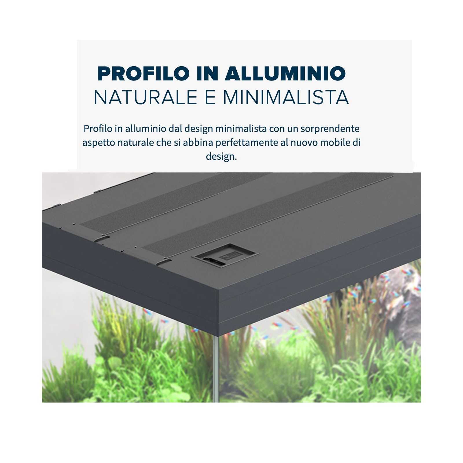Too many empty spaces at home? Here is the solution for aquarium that combines exclusive design practicality and noble materials, suitable for both the most demanding enthusiasts than to the most relaxed. Minimalist and modern design in a high quality aluminum profile that combines a contemporary wooden furniture with soft lines. Choose your favorite aquarium in five dimensions and three different colors. With Biobox® system including water pump, heater and effective filter material and Easy LED 2.0 lighting system