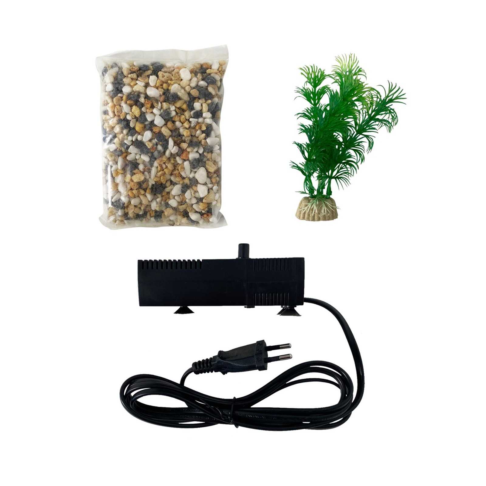 The aquarium has a capacity of 20 liters gross, equipped with an adjustable internal filter, a plastic seedling, a pack of sand and a scenographic background.