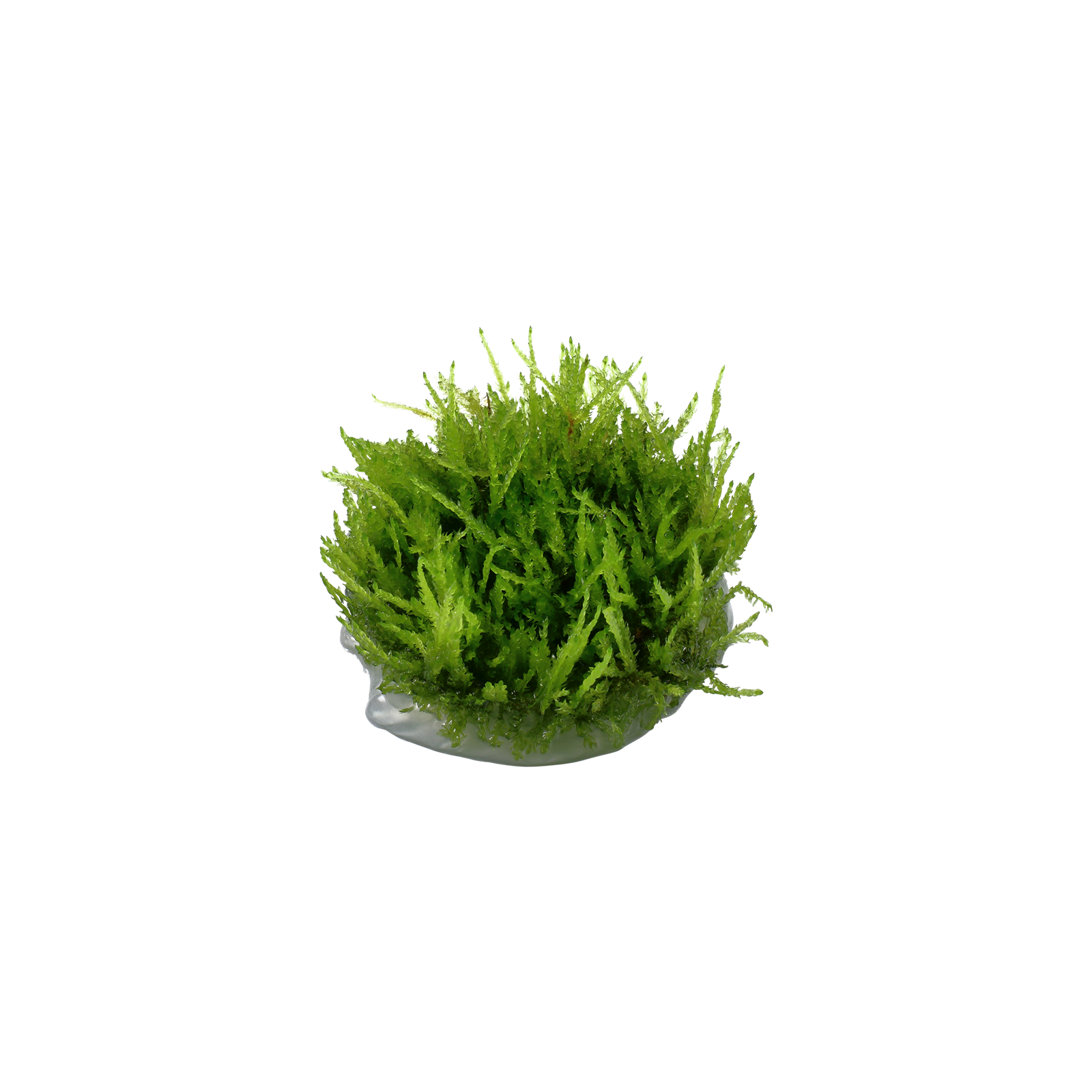 Vesicularia ferriei 'Weeping Moss', commonly known as weeping moss, is believed to be native to China and was released by Oriental Aquarium Plants.'Weeping Moss' is a fleshy moss, 1-3cm tall, with teardrop-shaped, bright green shoots.It is ideal for attaching to driftwood or roots, as its trailing growth pattern helps to create depth and contrast in the aquarium.'Weeping' is undemanding, fast growing and should be pruned frequently with scissors to maintain an attractive shape