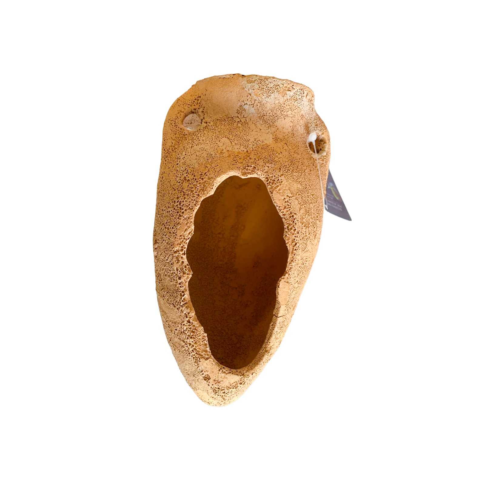 It can be partially underground in the substrate or decorated with mosses and epiphite plants for a more natural effect.