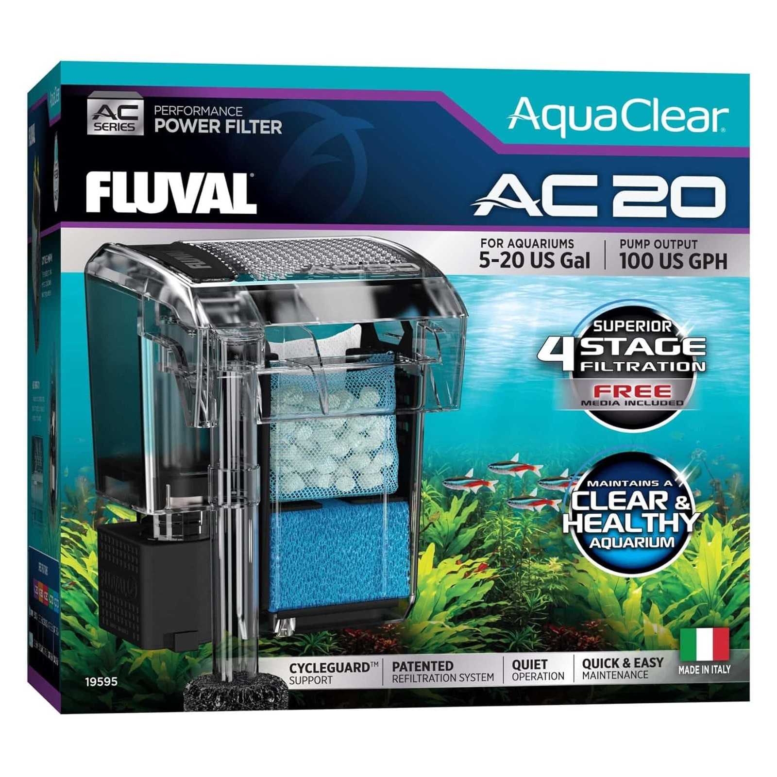 Patented filtering system for a healthy aquarium and clean water. Keep the beneficial bacteria for a healthy environment in the aquarium. The invisible and harmless beneficial bacteria are essential to remove ammonia and toxic nitrites. With the Aqua Clear filtering system sometimes simply replace one of the three filter cartridges. Following this procedure, a highly effective biological filtration is obtained.