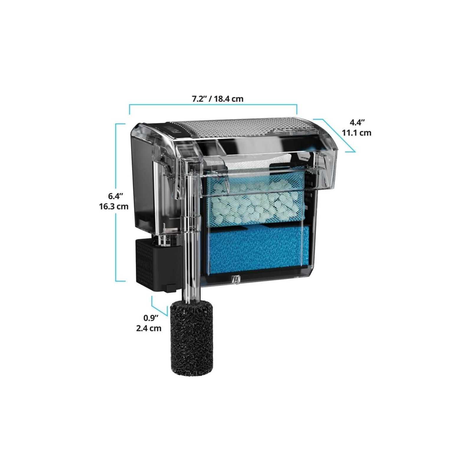 - The patented filtration system extends the contact time with the filter material for a cleaner, healthier and more stable aquarium from a biological point of view.