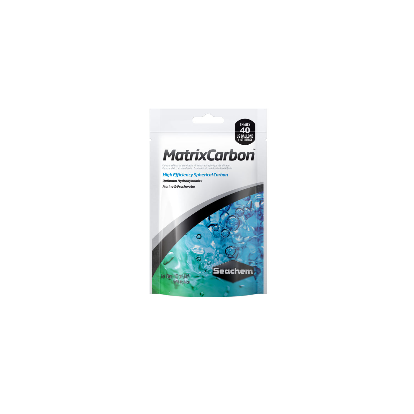 250 ml Easily treat 400 l for several months. Matrix Carbon is very clean and almost free to dust. To get better results, Matrix Carbon must be positioned so as to maximize the flow of water through it. It can be used in any high flow filter zone.