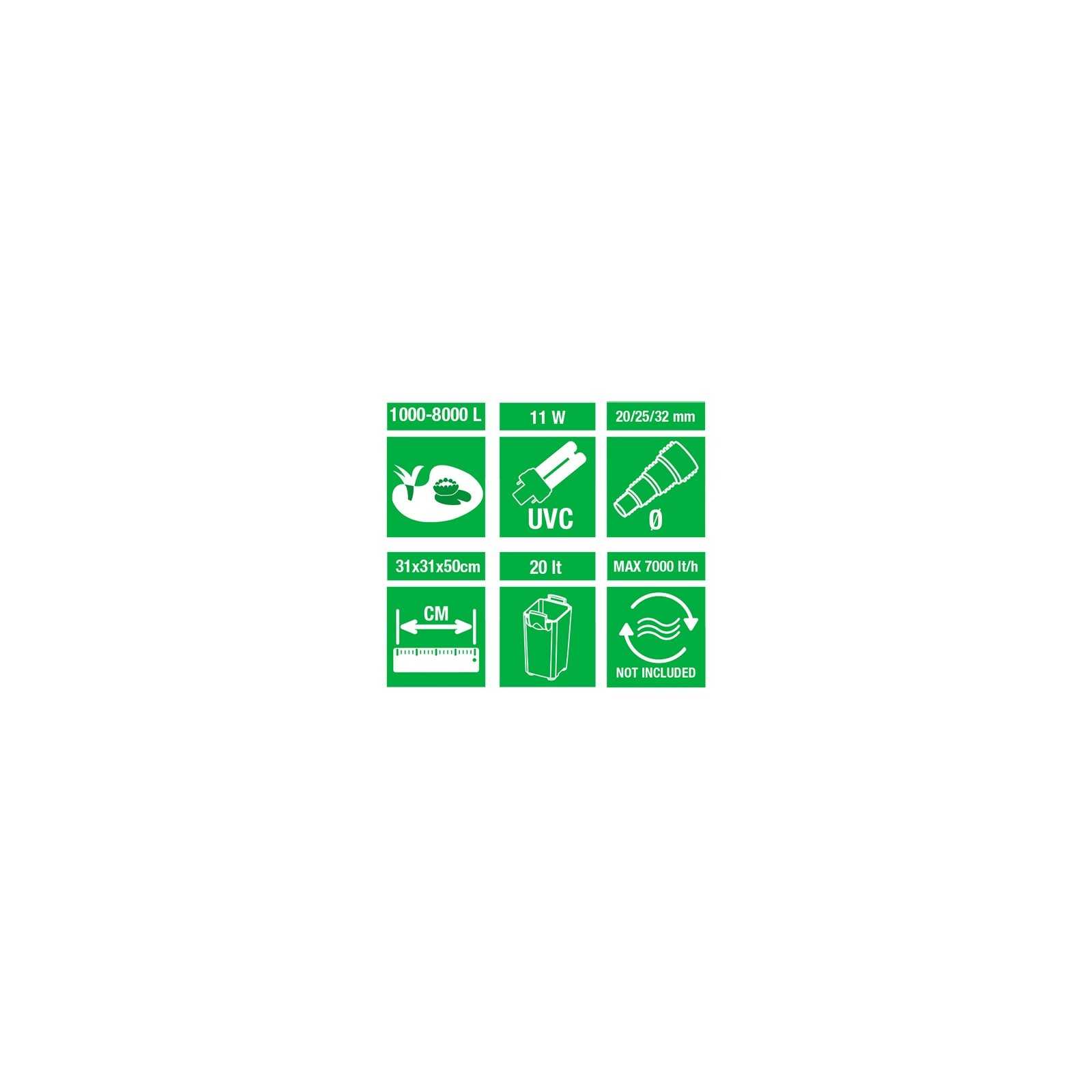 AMTRA Preexure combines biological and mechanical filtration with UVC sterilization allowing water to purify water and eliminate pathogenic germs and suspended green algae that cause cloud.