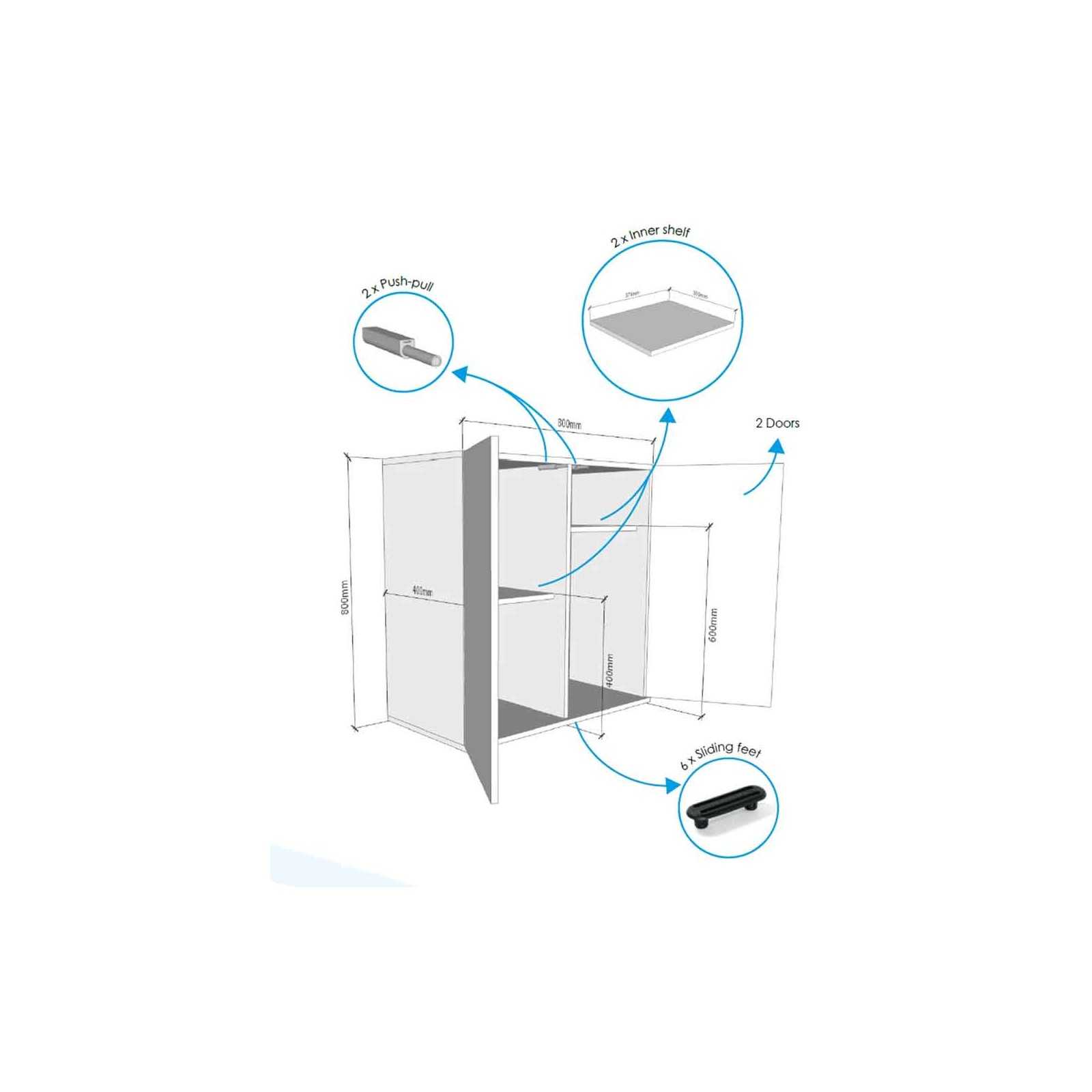 - 2 doors with push-pull