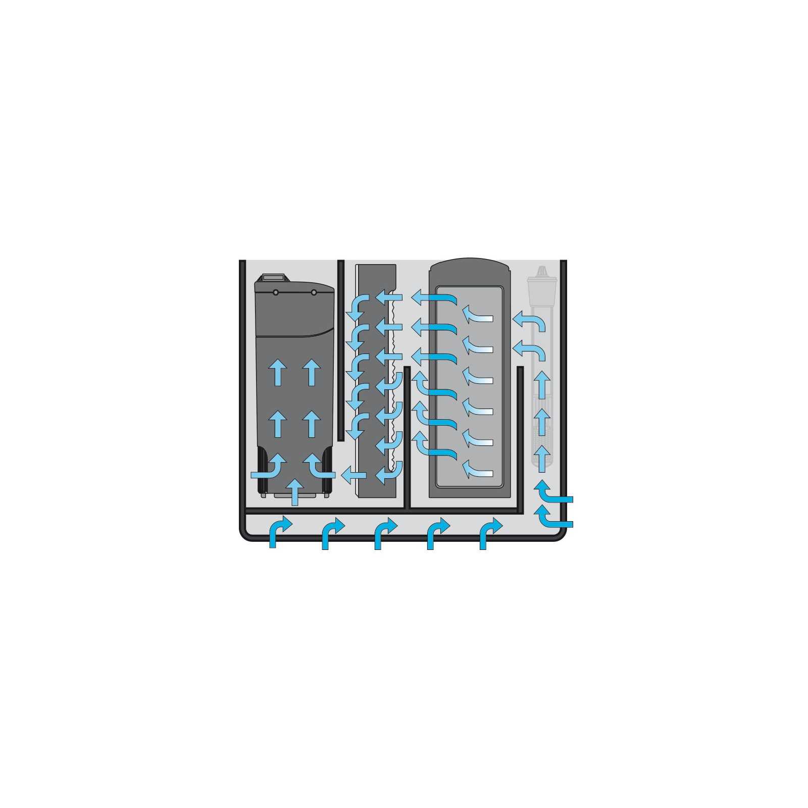Interior filter compartment complete with filter pump + chemical and biological cartridges