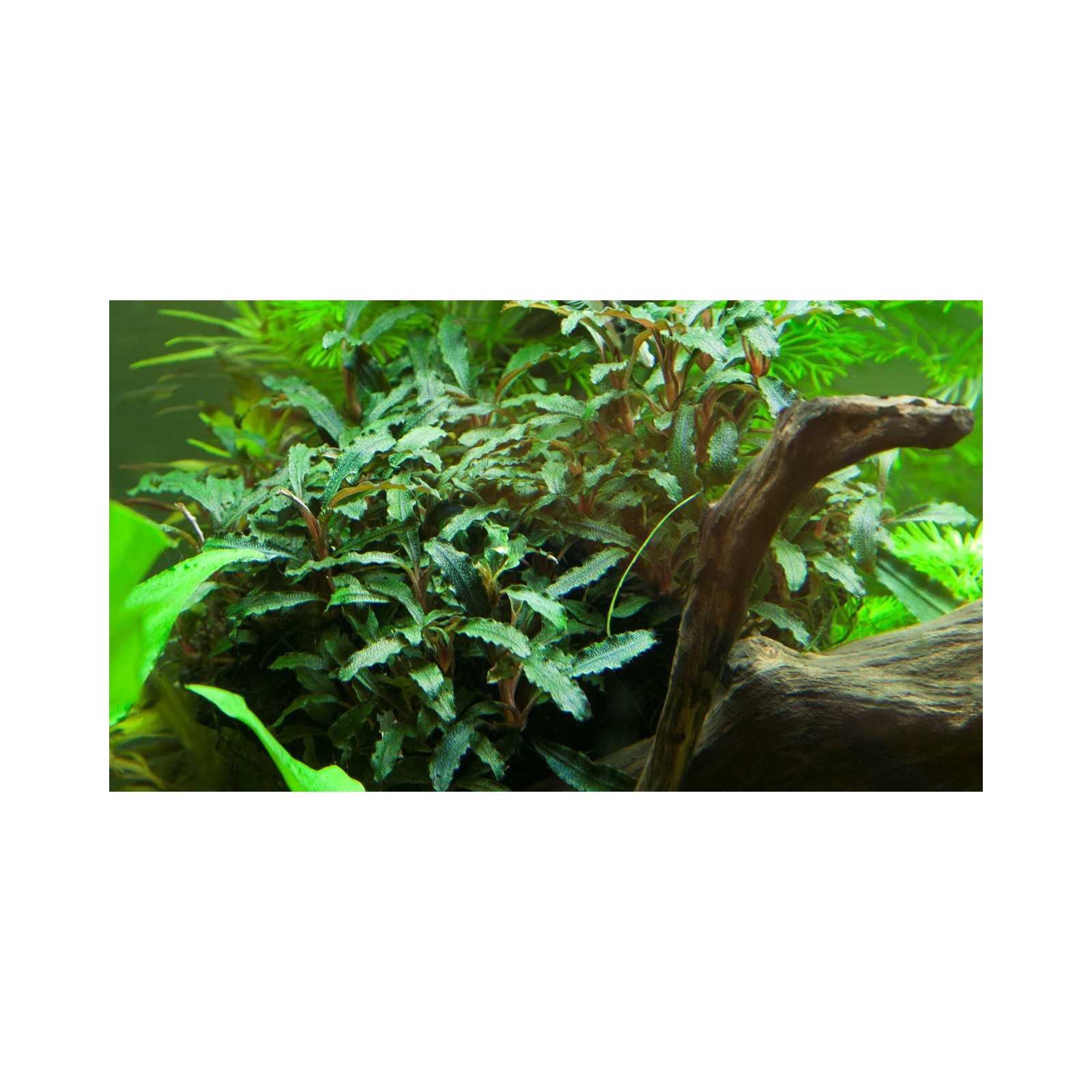 The Bucephalandra sp. 'Red' gives the best of lower light levels and is very easy to grow. The leaves are very dark green or red chiacey. On the submerged leaves, numerous small white spots appear and sometimes a small metallic blue color. The dimensions of the leaves are 2-4 cm wide, 4-6 cm in length and usually have wavy edges.