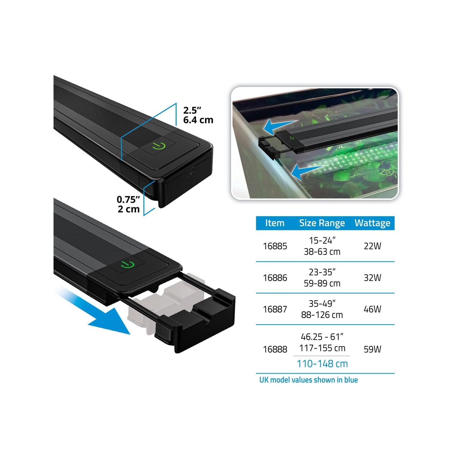 This model is perfect for small aquariums or layouts with little demanding plants in terms of light, like Anubias, Cryptocoryne and Mossi.