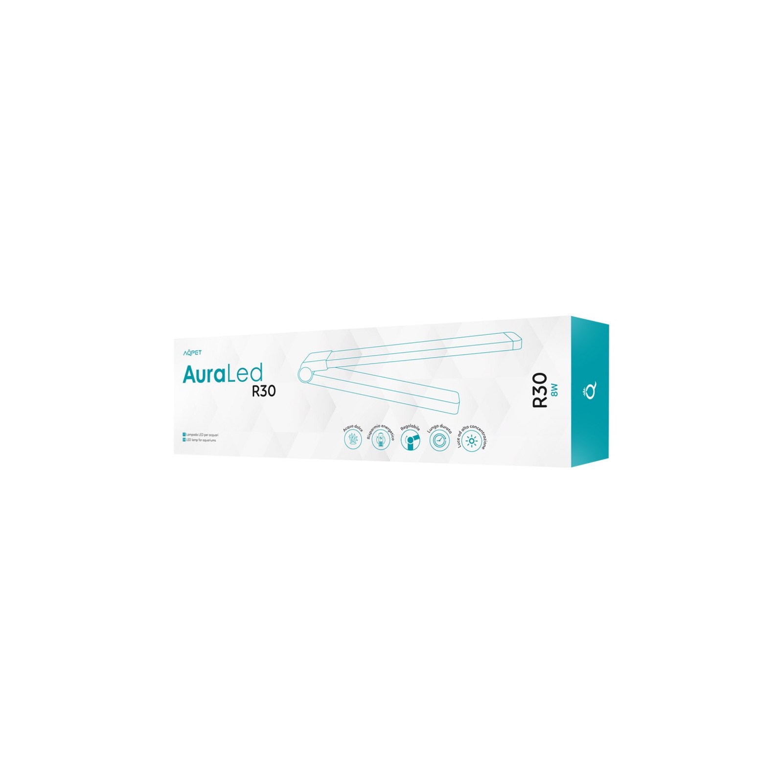 AQPET AURALED R30 It is an ultra-thin folding LED ceiling light for freshwater aquariums, ideal for small and medium tanks. It offers shining light with balanced spectrum, low consumption (8W) and immediate installation via a tub support included.