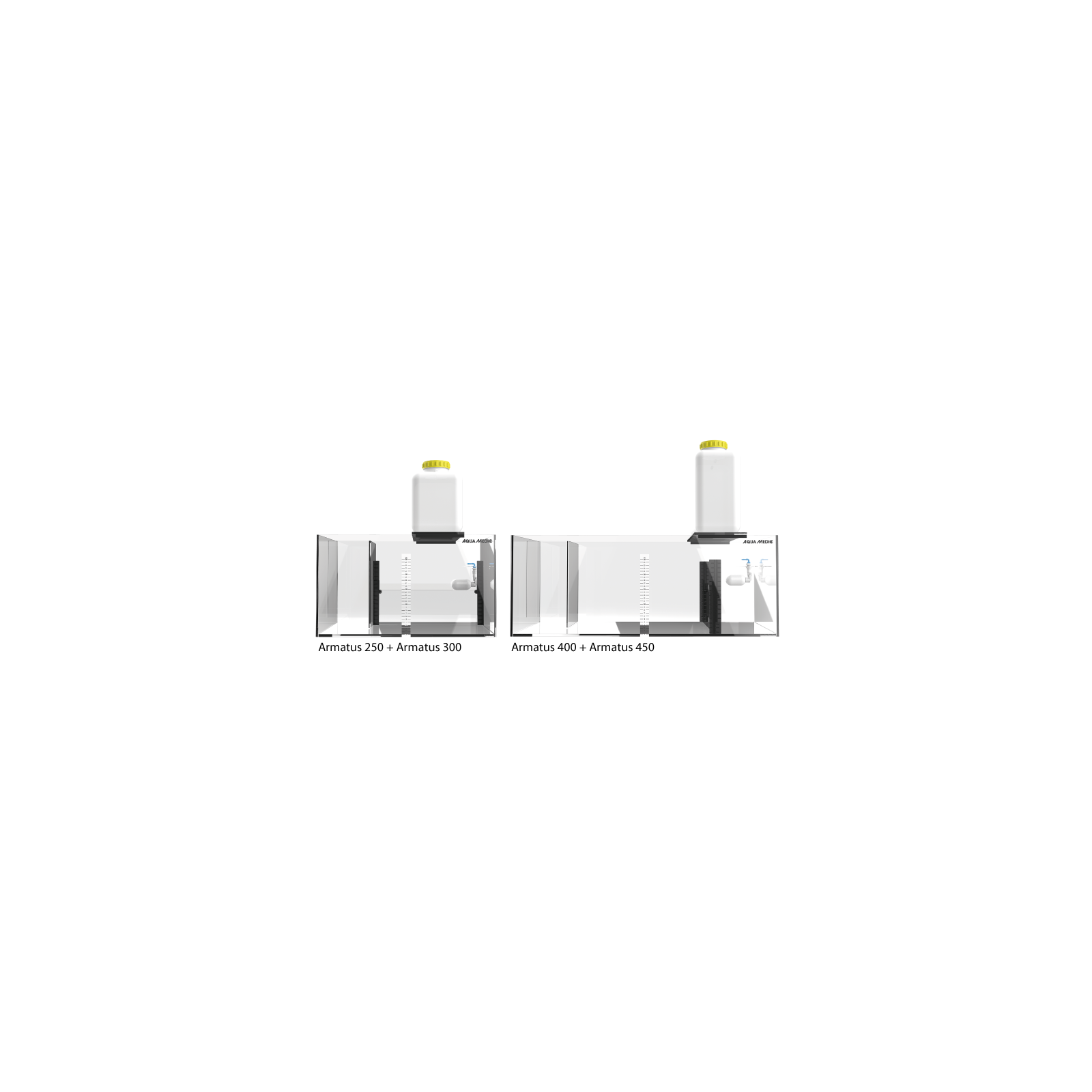 - filter compartment with pre-filter chamber, two clean water chambers to be used with additional biological filters and mechanics (e.g. skimmer, multireactor, etc.) and filter materials