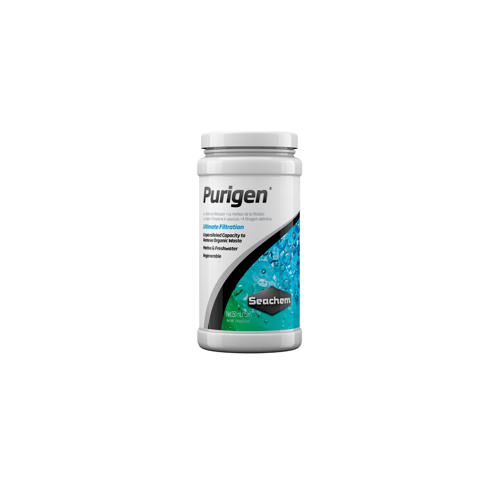 Purigen is the most effective synthetic adsorbent on the market, thanks to its spherical shape but at the same time reticulated macro. Similar products on the market are ionic exchange resins, while Purigen is specifically designated to be an organic cleaning resin. When ion exchange resins are loaded with metals and other contaminants, Purigen has just begun to achieve its potential. In fact, generally this product ignores elementary compounds having affinity with nitrogen organic elements. The primary source of nitrogen compounds in an aquarium is waste. Fish, corals and even plants produce nitrogenous waste. Purigen removes waste more quickly and more fully than any other product on the market.