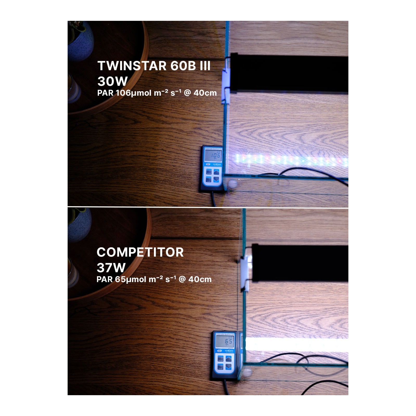 This is a new custom TWINSTAR LED to create an ideal spectrum for plant growth and improve visibility.