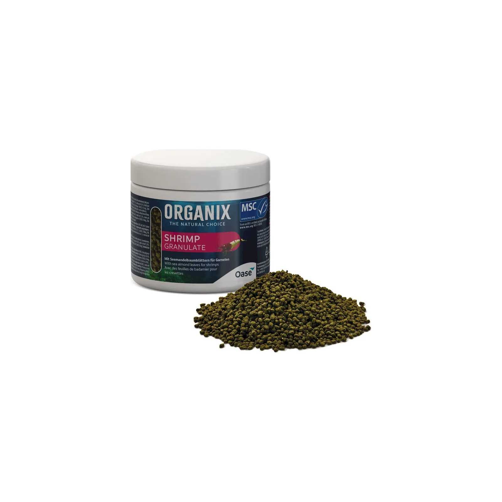 The Organix SHRIMP granules have been specially designed to meet the needs and special prawn preferences. Due to their rapid sinking, the great round granules reach animals that live on the bottom and provide them with everything that makes them strong. Selected ingredients, such as aquatic proteins, and constituent elements of vegetable origin, such as the mixture of algae with high nutritional power, are integrated by specific components for shrimp and some ghiottonie: football supports and strengthens the construction of the carapace And therefore the whole development of prawns and 10% of marine almond leaves make the Organix Scrimp granules particularly tasty.