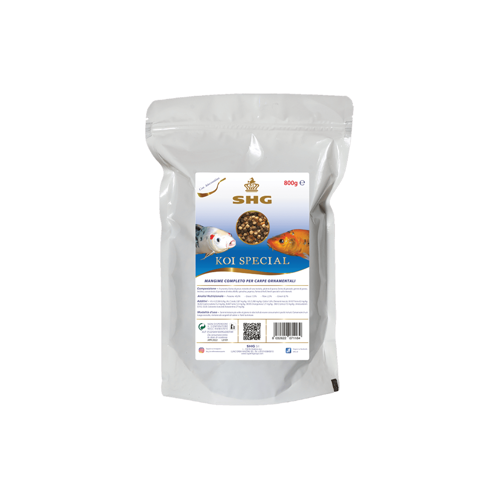 KOI Special is a complete food formulated for carps and pond ornamental fish, studied for easy digestion and high assimilation of nutrients. Enriched with algae with high carotenoids and natural paprika, it favors the brilliant coloring of fish and supports healthy and harmonious growth.