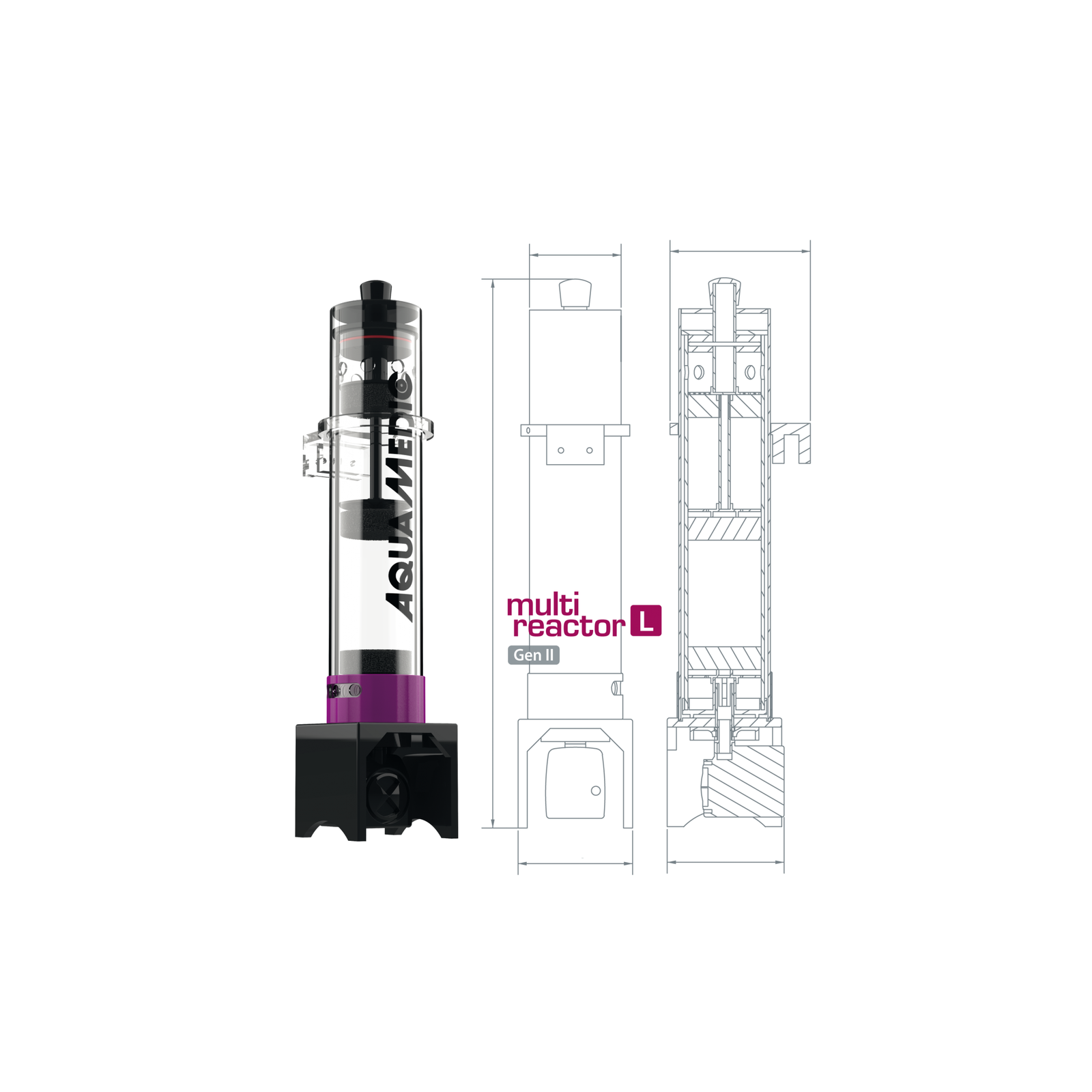 Inside the reactor, microalgae are cultivated using light, fertilizer and the content of carbon dioxide contained in the air. Fitoplankton can be used to directly feed many invertebrates filterers or used for breeding zooplankton. The integrated 10 W LED light provides sufficient light for good breeding. If the nutrient content is sufficient, the algae mass can quadruple in 24 hours. The plankton light reactor II has two connections for the simultaneous supply of air and CO2. If there is a strong demand for plancton, CO2 can be given in a forcing manner. The lid is provided with cap for electrode pH predisposition. With normal requirements, however, no additional CO2 is required.