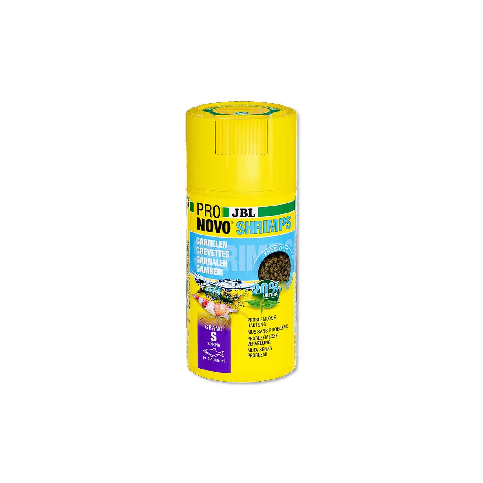 Mangime prebiotico e affondante per gamberetti: speciali fibre nel mangime alimentano i batteri intestinali positivi con del cibo per una sana digestione