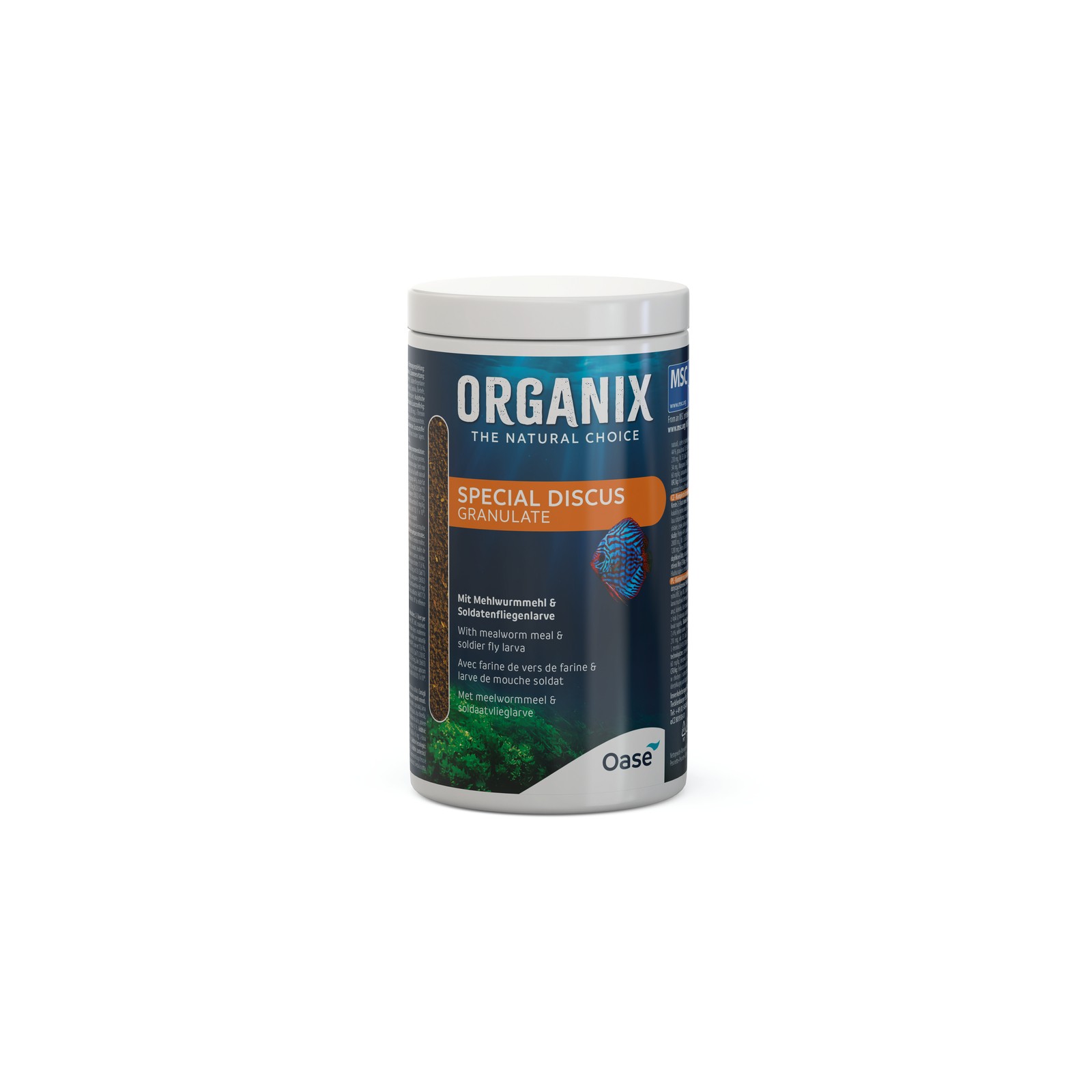 ORGANIX Discus Spec. Granulate è un mangime granulare di alta qualità, formulato specificamente per soddisfare le esigenze nutrizionali dei pesci Discus, noti per la loro delicatezza e bellezza. La sua composizione naturale e bilanciata contribuisce al benessere generale e all'intensificazione dei colori dei tuoi pesci.