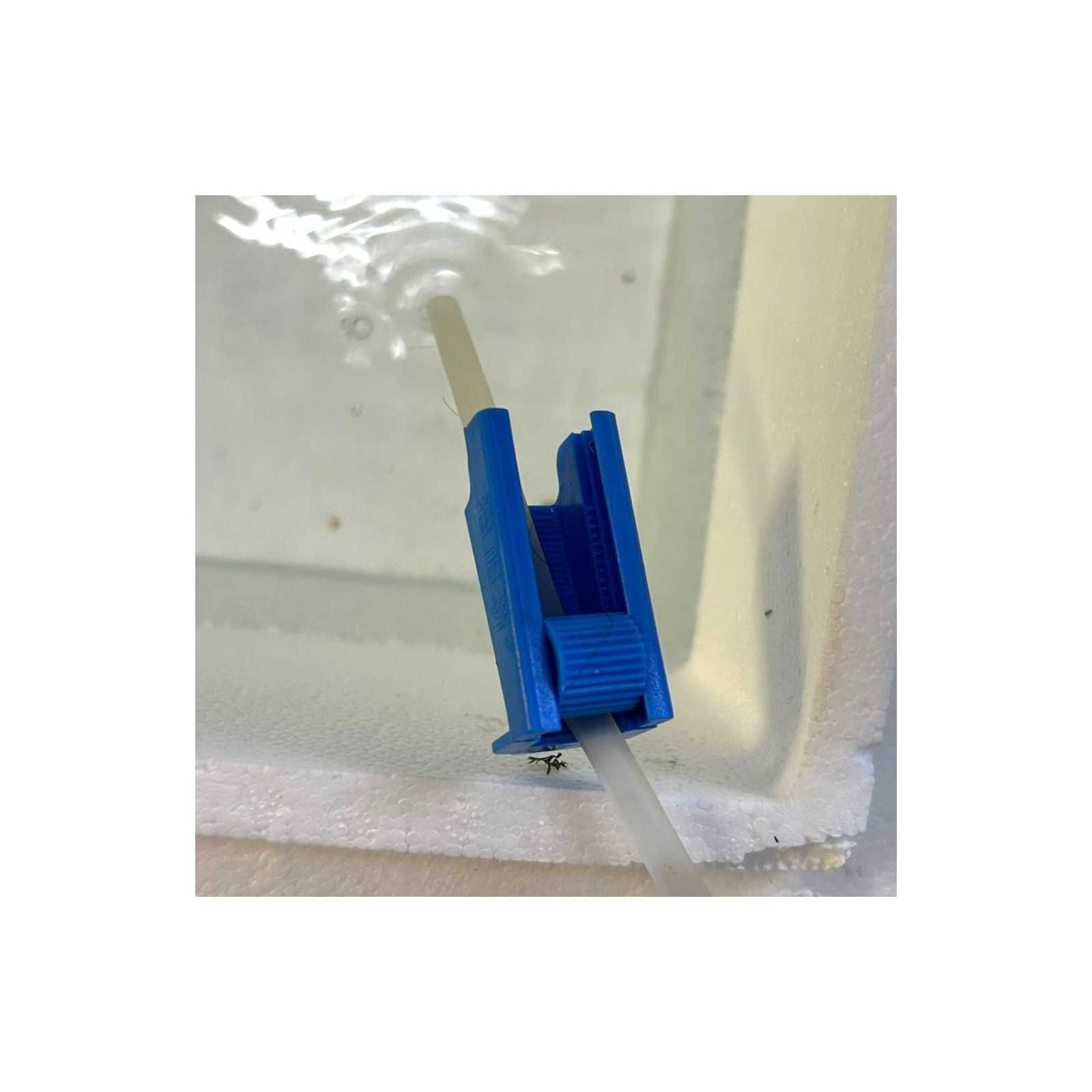 Il supporto consente di fissare il tubicino al bordo di un acquario o di un contenitore, garantendo stabilità senza l’uso di ventose o adesivi.
