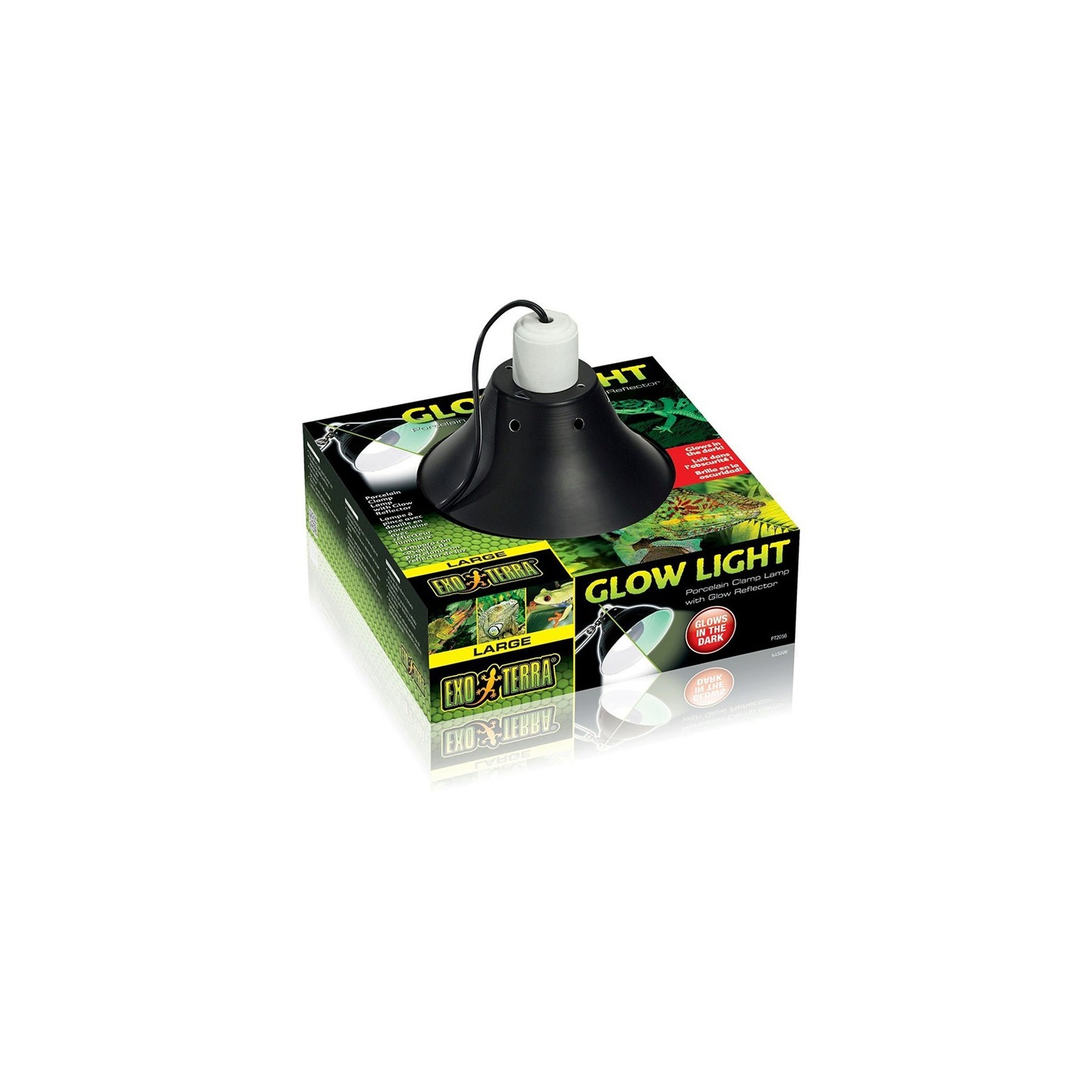Il Exo Terra Glow Light è un portalampada in porcellana con morsetto, ideale per terrari. Dotato di riflettore fosforescente a lunga durata e presa resistente al calore, permette di posizionare luce e calore esattamente dove servono, offrendo illuminazione diurna e bagliore notturno naturale senza stress per rettili e anfibi.
