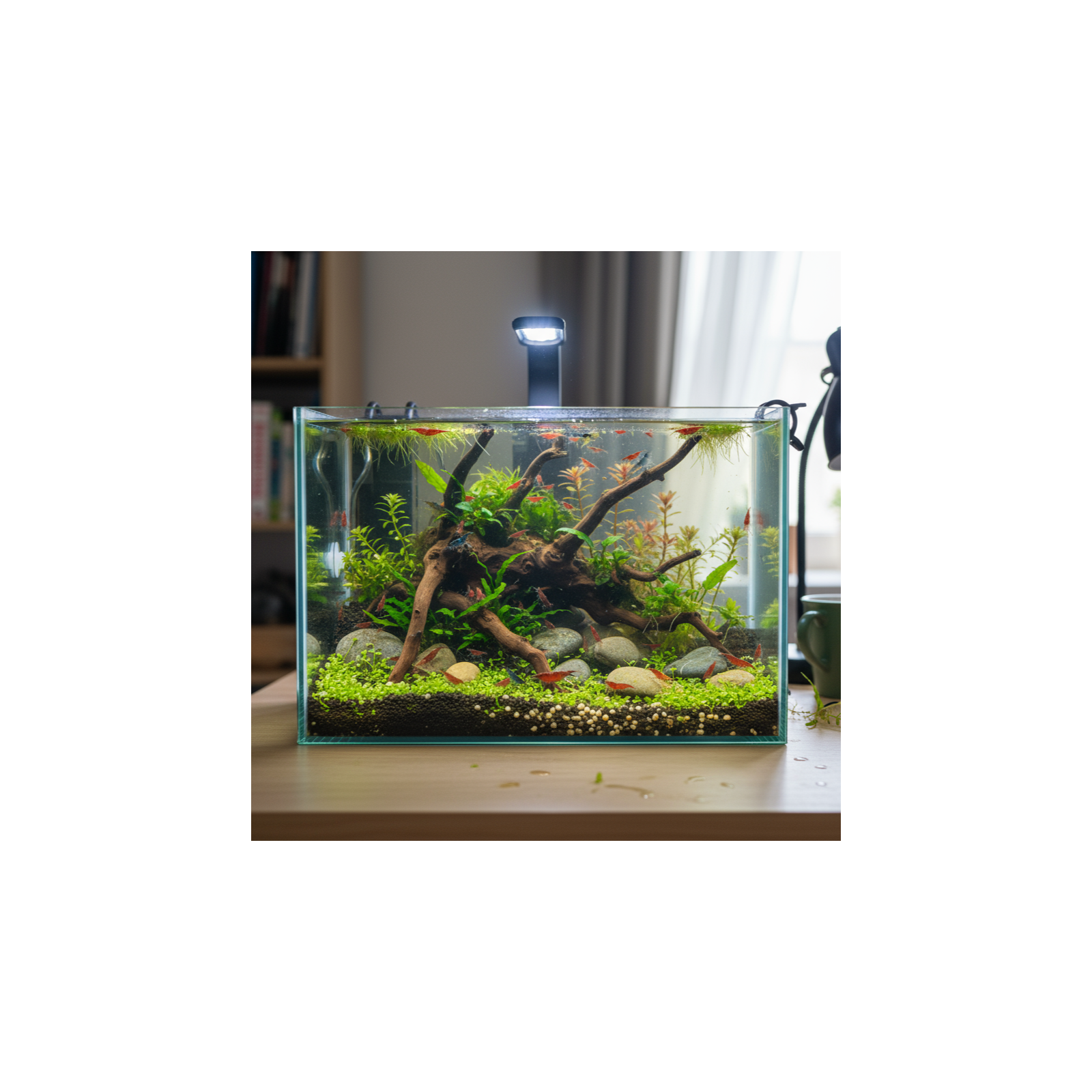 Con le sue dimensioni compatte, questa vasca è ideale per allestire un elegante caridinaio, una vasca dedicata alle piante, oppure uno scenografico angolo di aquascaping minimal, capace di portare tranquillità e armonia in qualsiasi ambiente.